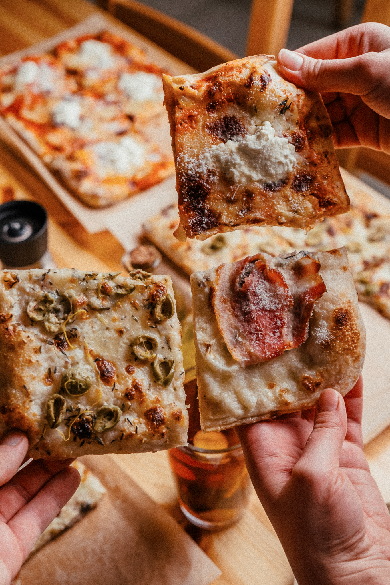 Pizzeria w Suwałkach, gdzie wnieśliśmy prostokątną pizzę na zupełnie nowy poziom. Naszą dumą jest połączenie tradycji z lokalnym smakiem Suwalszczyzny. Większość składników, które trafiają na nasze pizze, pozyskujemy od lokalnych dostawców. Słynna mąka z młyna w Suwałkach, ser z Wiżajn, boczek z Ejszeryszek i wiele innych! Dlatego każda pizza jest nie tylko pyszna, ale też oparta na produktach najwyższej jakości – świeżych, sezonowych i naprawdę wyjątkowych.